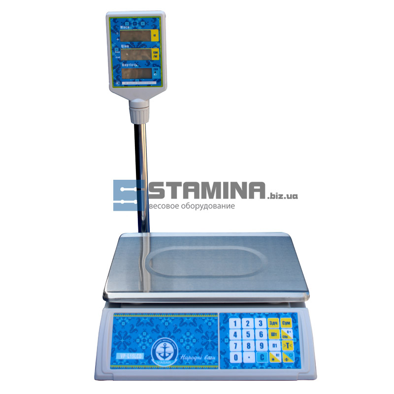 Весы торговые со стойкой VPL-LED номинальная нагрузка 15 кг, нержавеющая платформа 330х240 мм, работа от сети и автономно от аккумулятора.