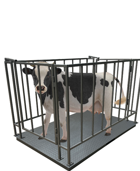 Весы для животных решетка ВПД-СК номинальная нагрузка 3 тонны, дискретность отчета 2 кг, платформа 1500×2000 мм, ограждение 900 мм, фиксатор решетки